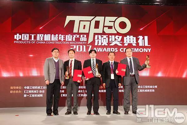 2017年3月27日,“2017工程机械产品发展(北京)论坛暨中国工程机械年度产品TOP50颁奖典礼”在北京隆重举行。来自中国工程机械工业协会及下属分支机构、国家工程机械质量监督检验中心、相关行业协会以及工程机械制造企业、施工企业、科研机构、高校、新闻媒体的200余位嘉宾参加了此次年度盛会。中联重科ZPS3880RE摊铺机荣获TOP50(2017)市场表现金奖,中联重科ZR460V型旋挖钻机荣登2017工程机械年度产品TOP50榜单。