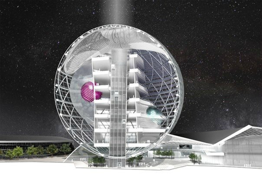 据哈萨克斯坦设计师介绍,哈萨克斯坦的主场馆占地5000平方米,设计形状为一个高度100米,宽80米的球体。主场馆被打造成一个未来能源博物馆:一共有7层,分别展示天基太阳能发电,太阳能,风能,生物质能,水电能以及动能。